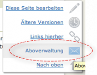 In der Toolbox rechts auf jeder Seite finden registrierte Benutzer eine Schaltfläche Abo verwalten. Hier kann man aktivieren, dass man über Änderungen dieser Seite automatisch per Mail informiert wird. Dies lässt sich natürlich jederzeit wieder deaktivieren.